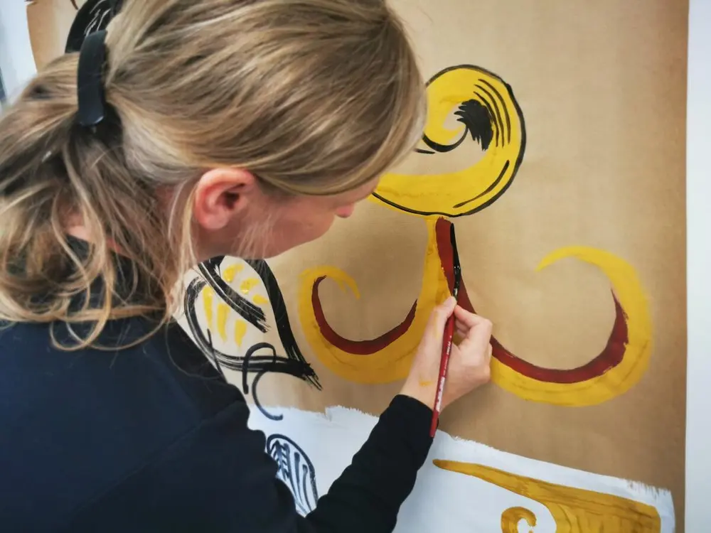 Et av temaene på webinaret blir konsolidering av limfargedekor. Her fra limfargekurs høsten 2021. Foto: Sara Langvik Berge, NIKU