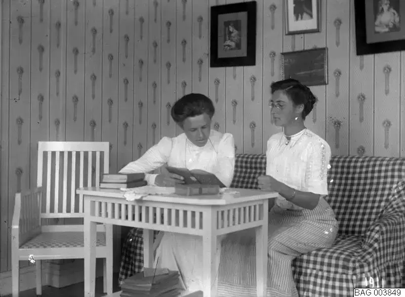 Rumsbild, två kvinnor vid bord, läsande. 1911. Foto: Harald Bager / Malmö Museer (CC BY) Hentet fra Riksantikvarieämbetets nettsider. Harald Bager / Malmö Museer